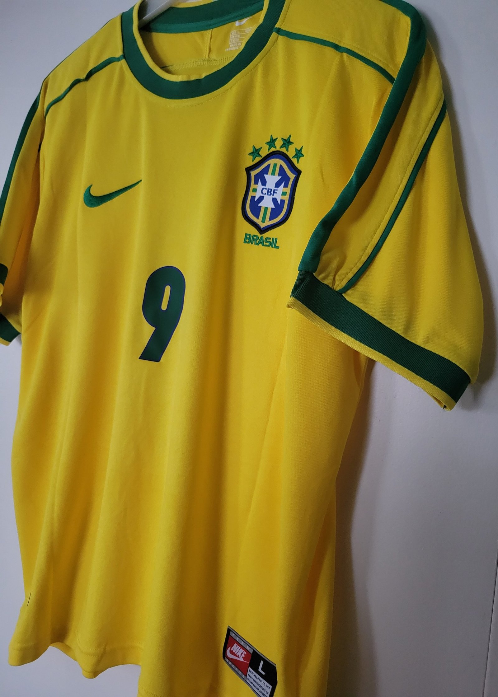 Histoire : Maillot domicile porté par le Brésil lors de la Coupe du Monde 1998 en France. Ronaldo mène la Seleção jusqu’à la finale contre la France, incarnant le style offensif et spectaculaire du football brésilien. Ce maillot symbolise la magie et la passion du football sud-américain des années 90.